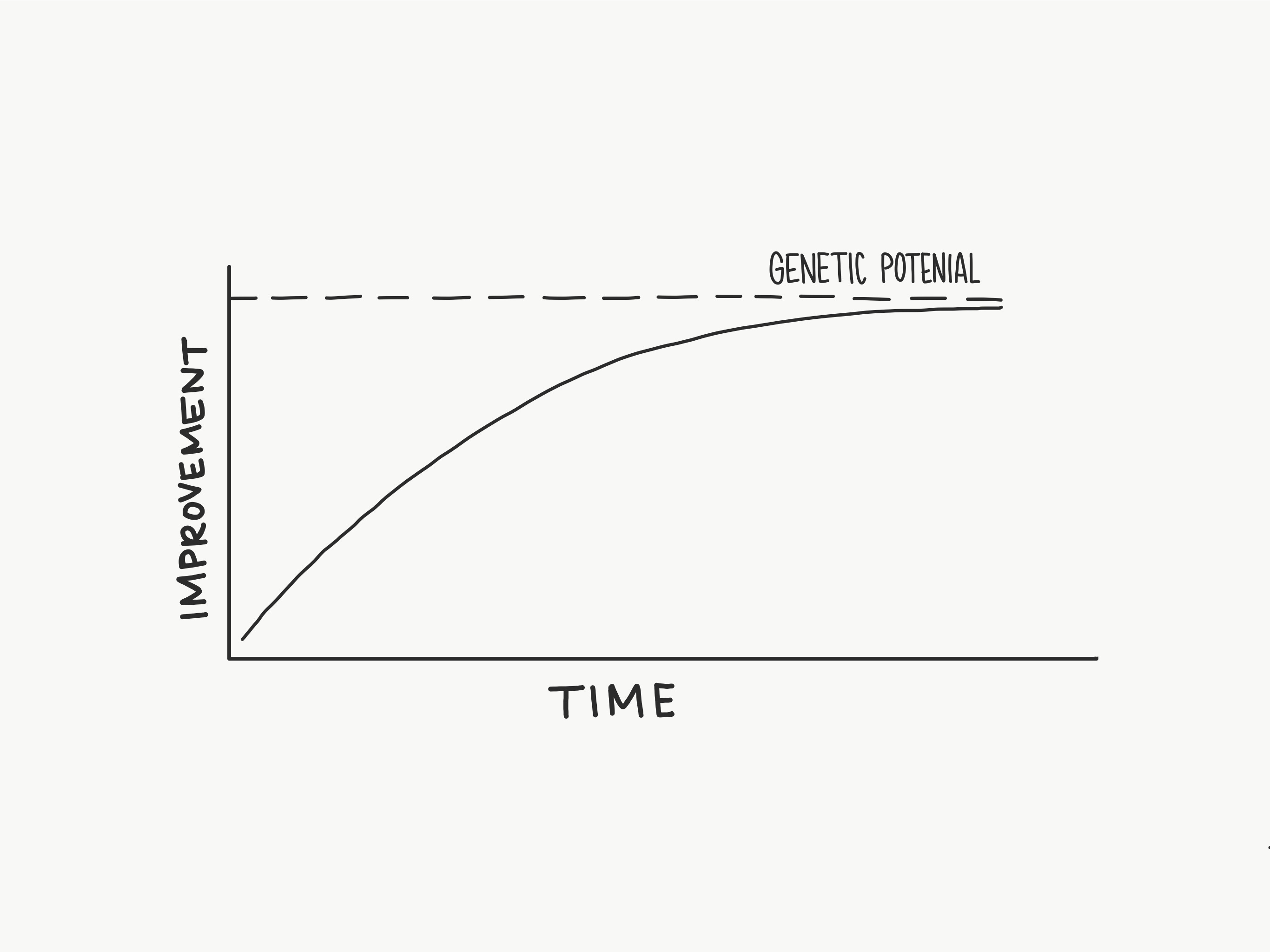 I also underscored that most of us are already really strong, far up and right on the curve of adaptation in many of our numbers. Even an average rock climber is probably in the top 10% of humans when it comes to grip and pulling strength.